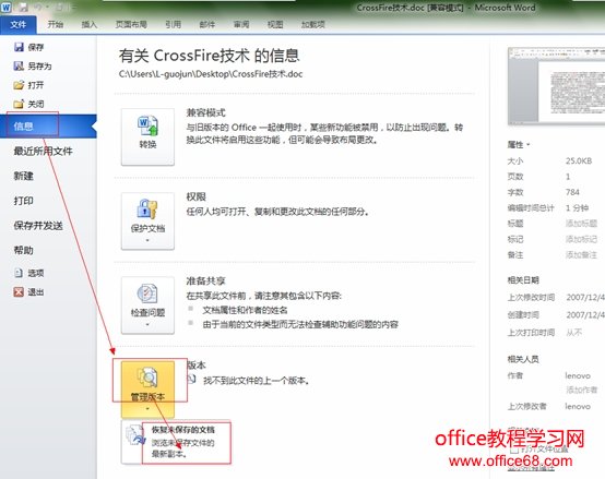 4、点击版本管理版本—选择恢复未保存的文档即可。