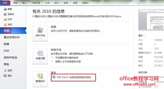 6、其实在之前版本的Office里也是有一定的保护措施存在,实现方式是每隔一段时间就自动保存一次当前文档,只是你想找到这个自动保存的文档并不容易。Office 2010里的Word改进了这种保护方式。