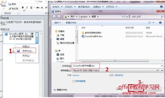1、Word 2003以上的版本都有自动记忆的功能!再次开机打开word文档是!文档会提示回复上次数据!点击确定即可。