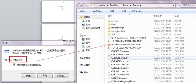 1、开始--运行--输入“%TEMP%”、把里面出现的文件按时间顺序排列,找出最近的一些文档,把扩展名改为.DOC,这时可以用WORD打开这些文档,一般可以找未保存的文档。图示如下: