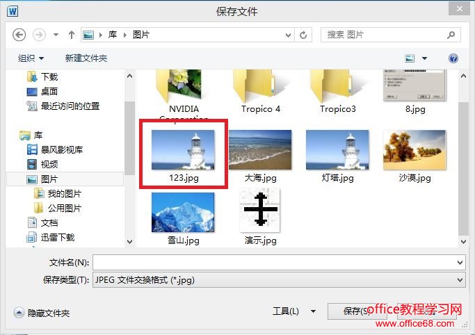 3、单击“保存”按钮,即可将文档中所选图片导出为图片文件。此时打开图片文件所在的文件夹可以看到该图片文件,如图: