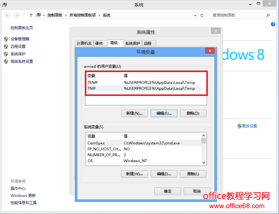 (3)确认TEMP和TMP是否为“%USERPROFILE%\Local Settings\Temp”,如果不是请点击编辑将之手动修改为“%USERPROFILE%\Local Settings\Temp”(去双引号)。