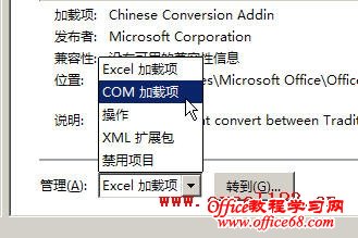 Excel2010“选项”对话框中选择COM加载项