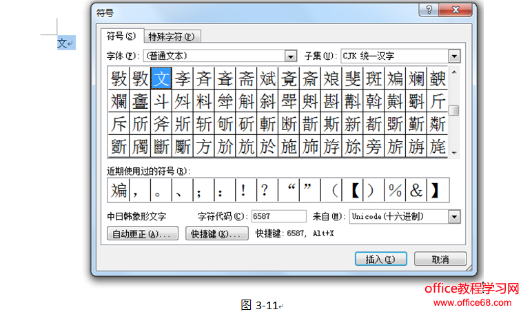 先输入偏旁,比如要输入“斒”字,先输入偏旁“文”,然后选中偏旁再执行“插入符号盰他符号”命令,弹出字符对话框,如下图。