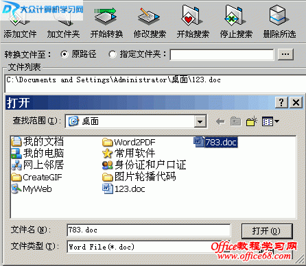 该软件界面如上图,软件名称是“Word2PDF”,到网上下载一个,解压缩文件,打开文件夹,直接双击程序名称即可运行!