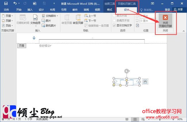 3.设置完成之后点击“关闭页码和页脚”选项即可退出编辑状态。如下图