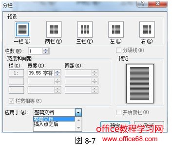 本节:将分栏设置应用于当前光标所在节。(只有进行了分节才有此项)