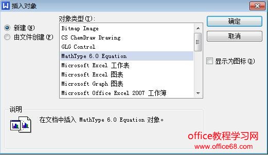 如果要经常在文档中编排各种复杂的数学、化学公式,MathType可以很好的帮助你批量修改公式的大小,这样你的工作更快捷,文档更美观。MathType行间距教程专为新手设计,从几个方面讲述了在MathType中更改行间距的做法,让新用户快速上手。 第一步 点击进入你的word文档,通常你写了一些文字和公式以后,会发现行距变得很大,这时你就可以点击word中的“插入”—“对象”,选择MathType 6.0 Equation,点击确定,如下图