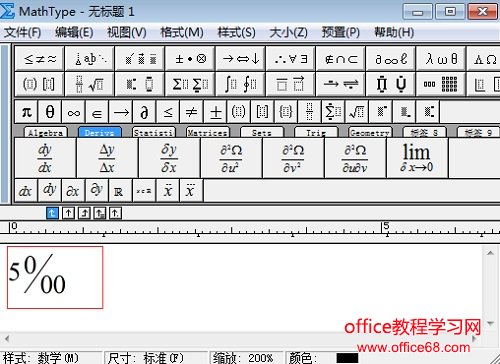 3.输入数字0。在斜分式符号的上面输入一个0,下面输入两个0;其实千分号一般不常用,倒是百分号经常出现,具体编辑教程可参考:MathType百分号怎么编辑。