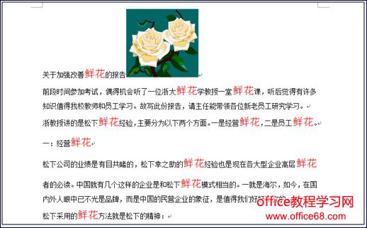 我想在当前这个文档中将“鲜花”两个字替换成一张花的图片。如下图所示: