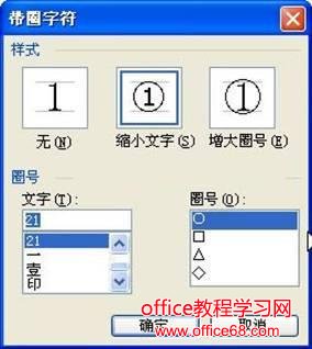 在圈号下的文字输入框输入数字,在圈号下选择圆圈,然后确定,如图: