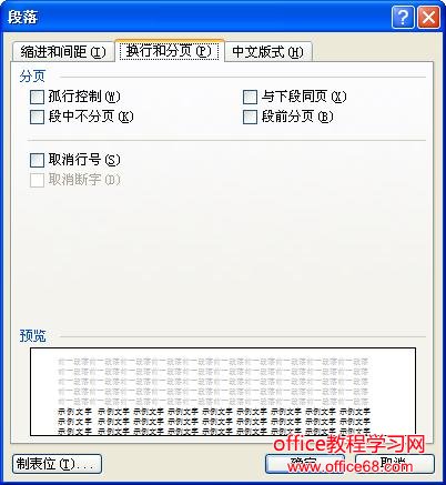 3、在出现的对话框中选择“换行和分页”选项卡,如下图: