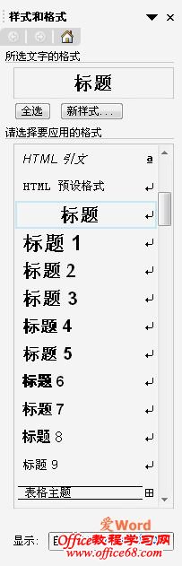 Word2003提供的“样式和格式”任务窗格可以创建、查看、选择、应用及清除文本的格式,如果现有的内置样式无法满足要求,可以对其进行修改。 操作步骤如下: 1、点击“格式”工具栏上的“格式窗格”按钮,打开“样式和格式”任务窗格,如图一。