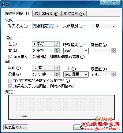 图四 “段落”对话框 5、按需要完成相关的样式修改后,点击“确定”按钮返回“修改样式”对话框,再点击“确定”按钮,“标题1”样式即被修改 |