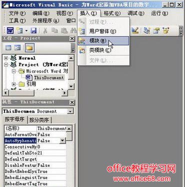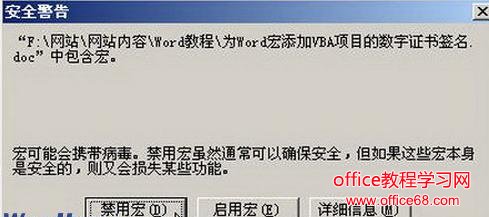 用户在使用Word编辑文档时可以借助Word宏命令提高工作效率。在默认情况下,Word宏的安全性设置为“高”,当运行Word宏命令时会自动禁用宏。如果将Word宏安全性设置为“中”,则每次运行Word宏会弹出Word宏安全警告对话框。而如果把Word宏的安全性设置为“低”来取消安全警告,则会增加恶意代码或病毒破坏的危险。为此,用户可以为Word宏添加VBA项目的数字证书签名,这样不仅可以取消Word宏安全警告,并且不会降低Word文档安全性。以Word2003为例,具体实现方法如下所述。 ![]() 第2步,打开“Visual Basic 编辑器”窗口,在菜单栏中依次单击“插入”→“模块”菜单命令,如下图所示。 第3步,打开模块窗口,在窗口中输入三行代码: 第4步,保存并关闭当前的Word文件,然后再次打开该Word文件。这时将自动打开“安全警告”对话框,提示用户是否运行Word宏,如下图所示。 2.安装 VBA 项目的数字证书 第2步,打开“Microsoft Office 2003安装”向导,在“维护模式选项”对话框中选中“添加或删除功能”单选框,并单击“下一步”按钮,如下图所示。 ![]() |