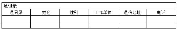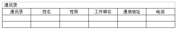 (2)使用【表格和边框】栏中的“铅笔”工具,把“通讯录”一行列入同一表格中(也可以使用“文字转换成表格”的功能)。如图2所示。 图2 把“通讯录”一行列入同一表格中