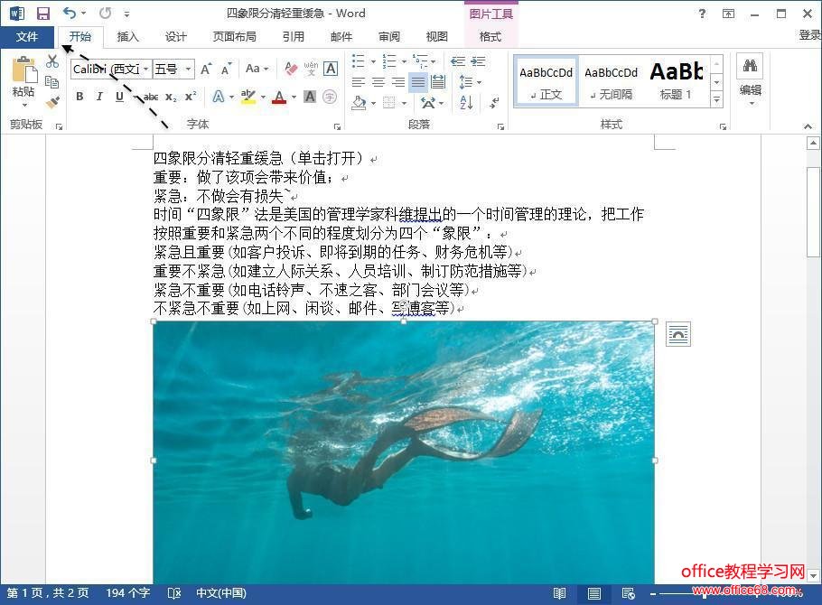 如果 Word 文档中有很多张图片时,此时就可以使用批量导出,非常的方便。这里以 Word2013为例,先点击左上角的「文件」菜单,如图所示。