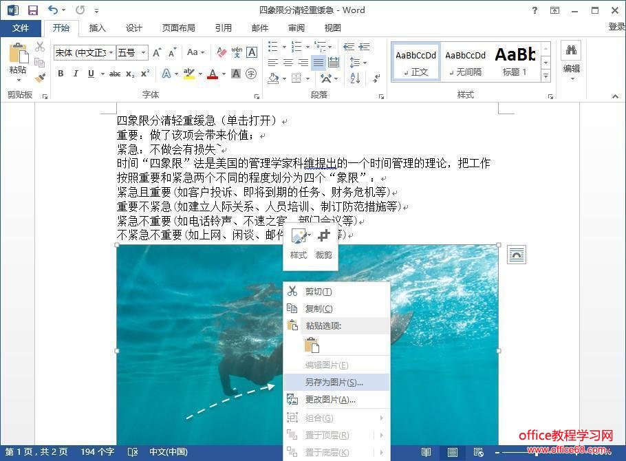 如下图所示,在不知道如何批量在 Word 文档中导出图片时,可能都是采取手动选择图片,然后再右键选择另存为。这种操作方法固然可行,但遇到文档中有很多图片时,就显得很吃力了。