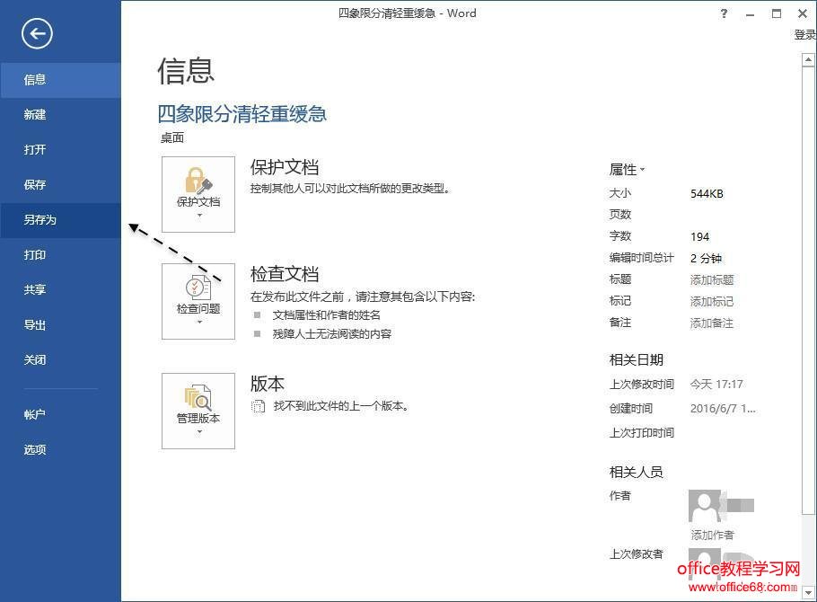 接下来在菜单中,选择「另存为」一栏选项,如下图所示。
