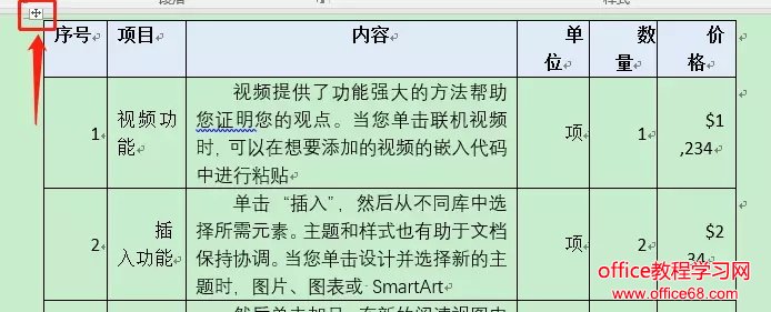 技巧一:点击表格左上角的十字架即选中整个表格。