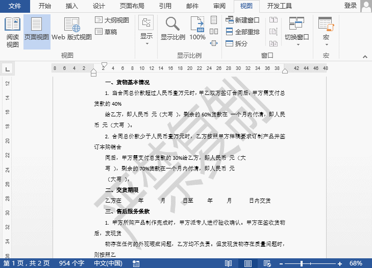 如图所示,我们有为文档设置了水印。