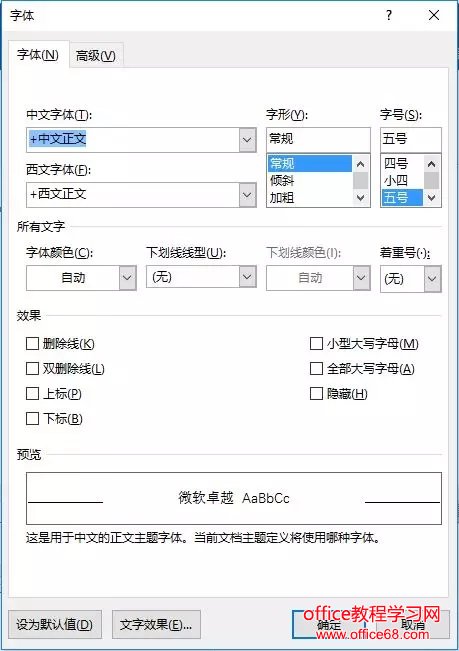 ![]() 方法二:按【Ctrl+D】键打开【字体】对话框进行设置。