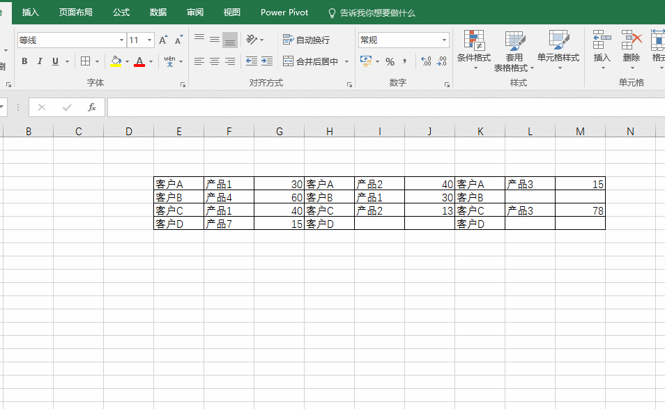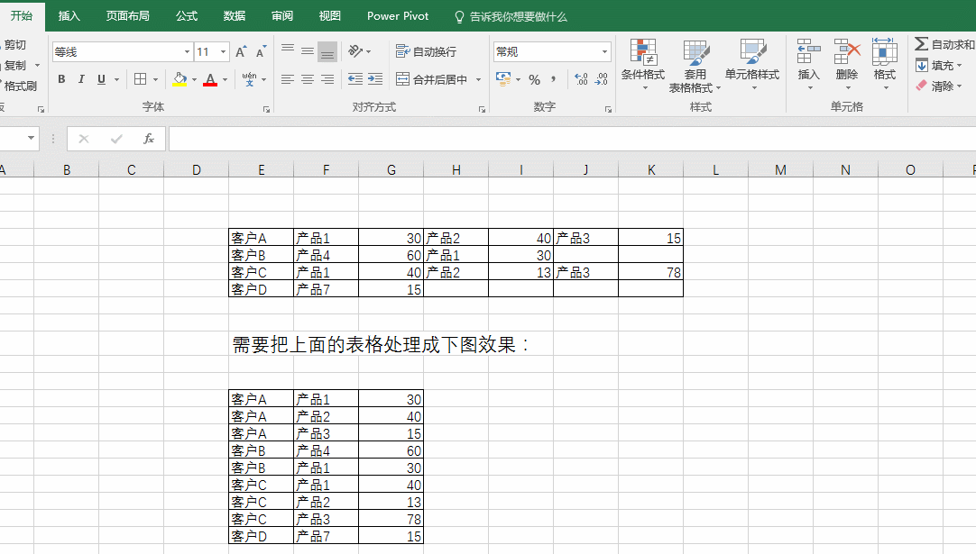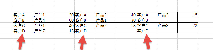 这个问题的要点是,需要将客户、产品和价格一行显示,而且客户的名称需要重复出现。