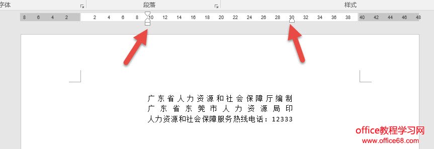 那这个思路就简单了,无非就是“压缩”调整两端的左右段落缩进符。那么问题来了,应该如何缩进才能保持这三段内容是在版心的中间呢?