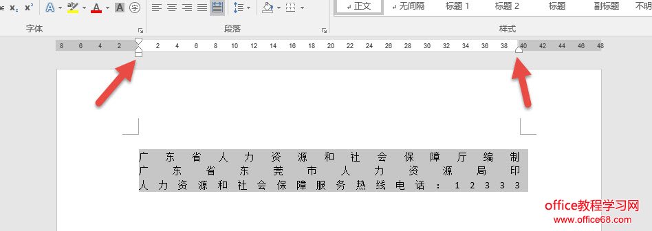 设置完毕后,发现是针对版心内部进行对齐,注意下图中的左右段落缩进符。(下图箭头所示)