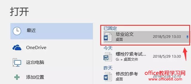 如果有些文档是我们经常需要使用的,为避免被更替,可以通过如下方法将它们固定在列表中,不管之后打开过多少文档,它都不会被替换。