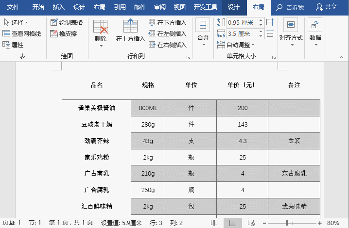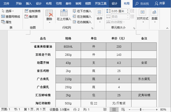 word如何微调行高和列宽