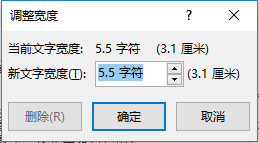 方法:选择需要调整宽度的文字,单击【开始】-【段落】-【中文版式】按钮,在弹出的菜单中选择”调整宽度“命令。打开如图所示的对话框,输入需要设置的宽度值,单击【确定】按钮。如要要取消调整文字宽度的效果,可再次打开该对话框,然后单击【删除】按钮即可。