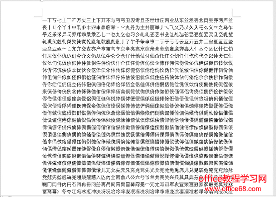 (3)即可查看到文档中自动输入了汉字全集文本,如下图所示。