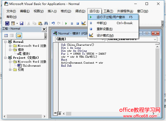 除了上述2种快速输入文字的方法之外,Word中还有一个很有意思的文字输入技巧,即利用VBA可以快速在Word中输入汉字全集。