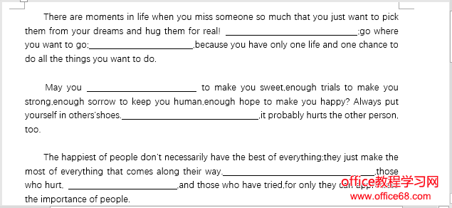 在利用Word编辑一些阅读填空文章时,我们需要将文章中的某句话加上下划线,而删除下划线上的文字,只保留下划线呢?