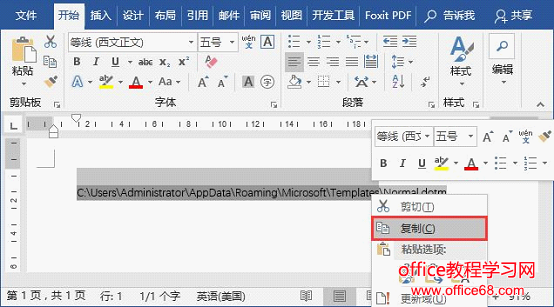 ![]() (3)Word文档中将显示该域获取的路径,选择并复制路径(注:这里不要选择后缀文件名)。