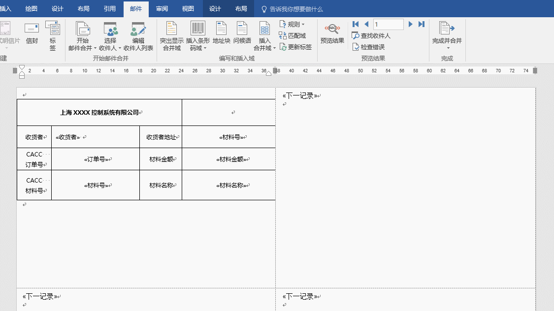 下图是Word标签的模板,希望能把Excel的每行记录批量生成Word表格标签。