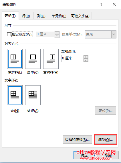 第三步:在表格上单击鼠标右键,在弹出的快捷菜单中选择“表格属性”命令,打开”表格属性"对话框,点击“选项”按钮,勾选【允许调整单元格间距】,设置为0.5cm,点击确定。