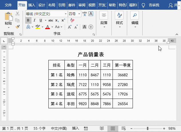 按下Alt键,向左或向右拖拽表格线时,页面上方会出现列宽标尺,且只会改变当前表格线左、右侧表格列宽。