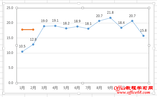 如果定义名称时使用了上述返回多数据点的公式,可忽略此步骤直接到第6步设置“系列2”的格式即可,只不过所绘制的横线看上去两端似乎有“空缺”。