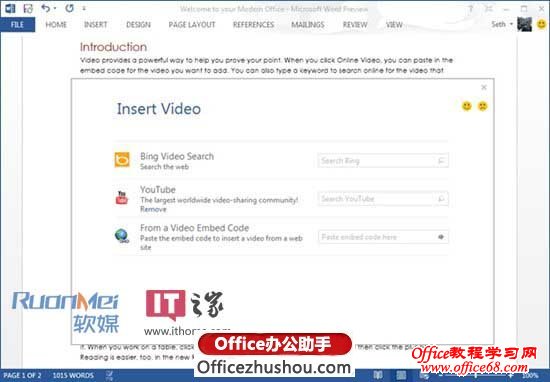 当微软首次透露Word 2013中的新功能时,最大的亮点之一就是允许用户在他们的文本文件中插入在线视频。近日,该公司又补充了关于这一特殊功能的信息。