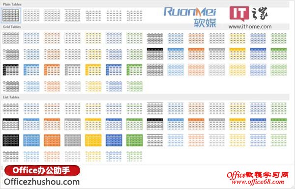 微软也对Word 2013的表格样式库做了修改。允许用户在列或者网格基础上快速选择表格式。