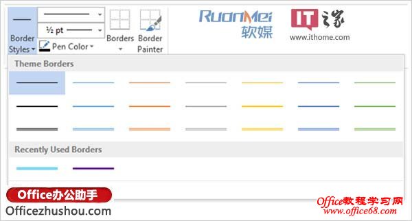 另一个新特点是边框库。微软表示边框库里面包括边框宽度、颜色和大小。只要按一下就可以改变颜色。如果你改变所选主题,边框会自行改变与主题相匹配