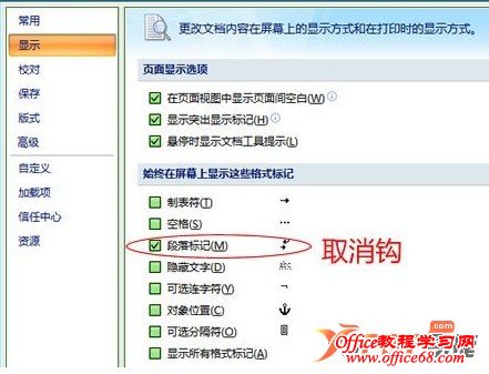大家想必都知道,在Word文档中,如果你没有特别的设置过,每一段的最后,都有一个回车换行符,看起来是否影响文档的整体美观。下面将分别Word2010、Word2007、Word2003来教大家如何隐藏回车换行符。 一、Word2010如何隐藏回车换行符 1、单击“文件”选项卡,点击左下方的“选项”; ![]() 2、弹出“Word选项”后,选择“显示”,然后将“段落标记”前面的钩去掉即可。 ![]() 二、Word2007隐藏回车换行符的方法 1、单击“Office”按钮,选择“选择”; 2、和Word2010一样,在“显示”中将将“段落标记”前面的钩去掉即可。 ![]() 三、Word2003怎样隐藏回车换行符 Word2003隐藏回车换行符,可以通过两种方法实现: 方法一:将“视图”菜单下的“显示段落标记”前面的勾取消。 ![]() 方法二:点击“工具”菜单中的“选项”,在“视图”窗口中将“段落标记”前面的钩去掉,确定。 ![]() 易捷PDF转换成Word知识小课堂:以上是在一篇Word文档中隐藏回车换行符的方法,对于一篇已经编辑过的文档,文档中的换行符也是可以取消的,您可以打开查找替换对话框,在查找内容处输入“^p”,替换为处什么都不用输入,然后选择全部替换,您文档中所有的换行符就都不见了。 ![]() |