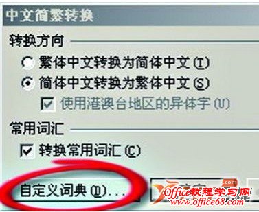 2、一些生僻的字词,或者一些网络新词无法转换怎么办?Word2007为我们提供了自定义词典的功能。