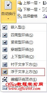 5、设置文本框的图片环绕方式为浮于文字上方;