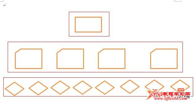 3、根据实际的需要,按照上面介绍的方法再插入一些图形,需要注意的是,为了让流程图看起来更加的层次清晰,我们一般会一个层次选择一种形状,如下图: