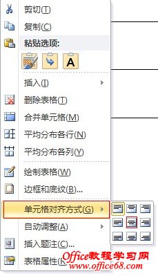 3、选中表格,右键—单元格对齐方式,选择上下居中、左右居中的一项;