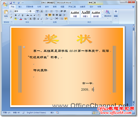 图2 下载所需“证书、奖状”模板 (3)随即Word会自动基于该模板新建一个文档,该文档继承了模板中所有的内容和格式,用户只需在各个预留的位置中填写相应的信息即可,如图3所示。