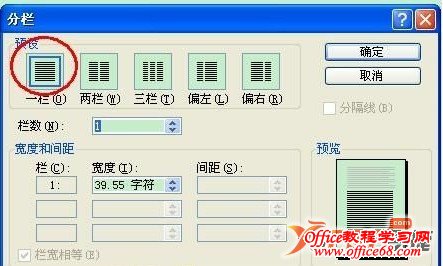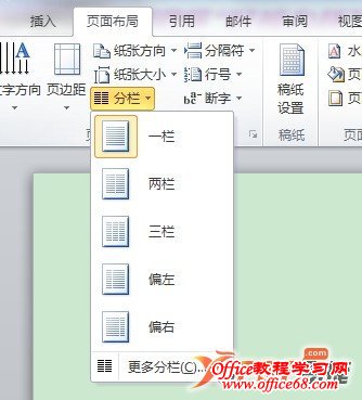 有的时候,我们在网上下载的Word文档是设置了分栏的,我们如果不需要,可以取消Word文档中的分栏设置,具体方法如下: 一、Word 2003取消分栏 1、选中要取消分栏的部分,如果没有选中,默认是对全文进行操作。 2、单击【格式】【分栏】,在预设中选择一栏,单击确定。 ![]() 二、Word 2007/2010取消分栏 1、选中要取消分栏的部分,如果没有选中,默认是对全文进行操作。 2、【页面视图】【页面设置】。 3、在页面布局选项卡下,单击分栏右侧的三角形下拉菜单,选择一栏即可。 ![]() |